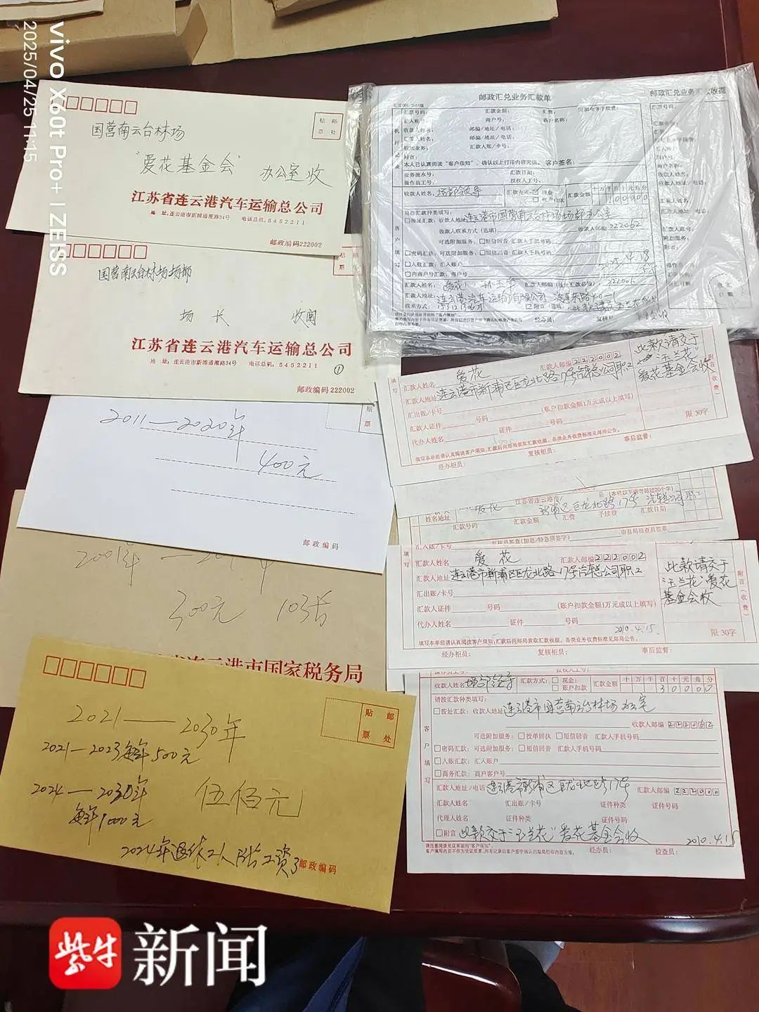 孙玉华老人说,她之所以留存这些票据,是因为现在年纪大了,真怕把汇款名称和地址给忘了。