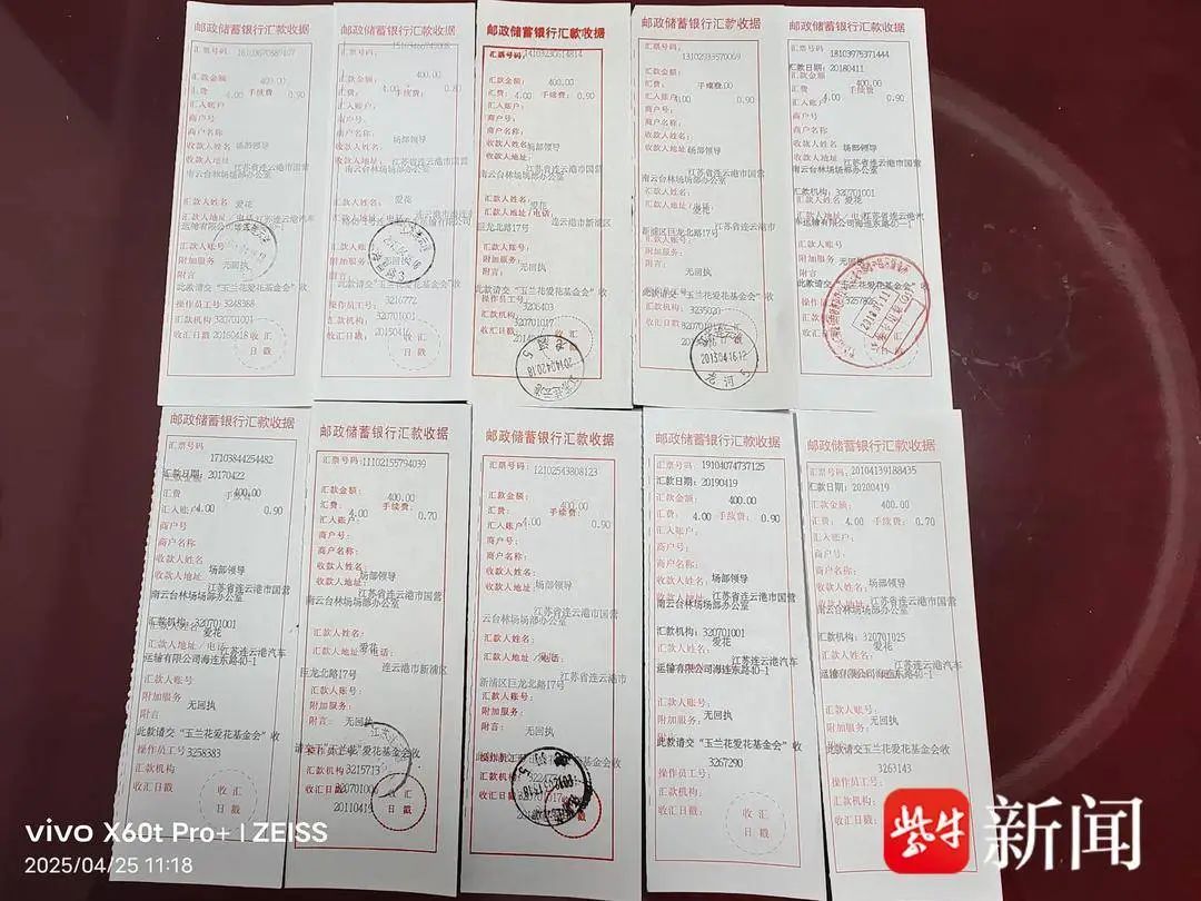 4月21日,连云港南云台林场收到署名为孙玉华的热心市民寄来的1000元汇款单。那么这次汇款人孙玉华究竟是不是此前隐姓埋名的“爱花”呢?王三祥笃定地告诉记者,每年这个季节,只有一个人会给“玉兰花王”捐款,那么孙玉华肯定就是“爱花”!